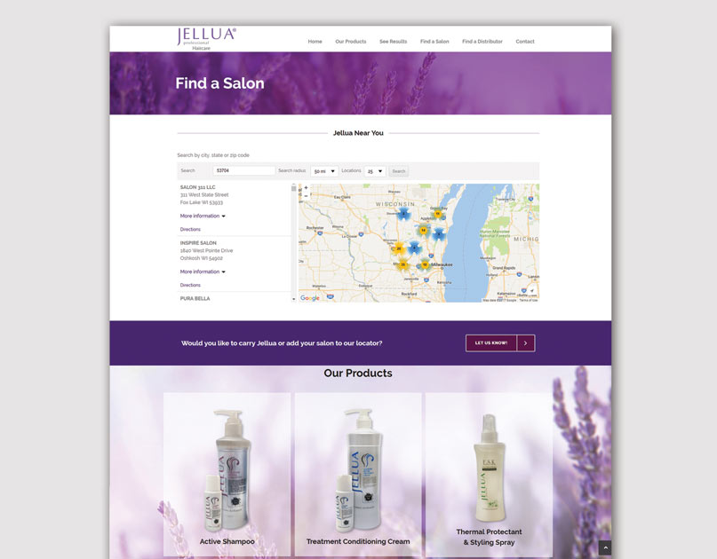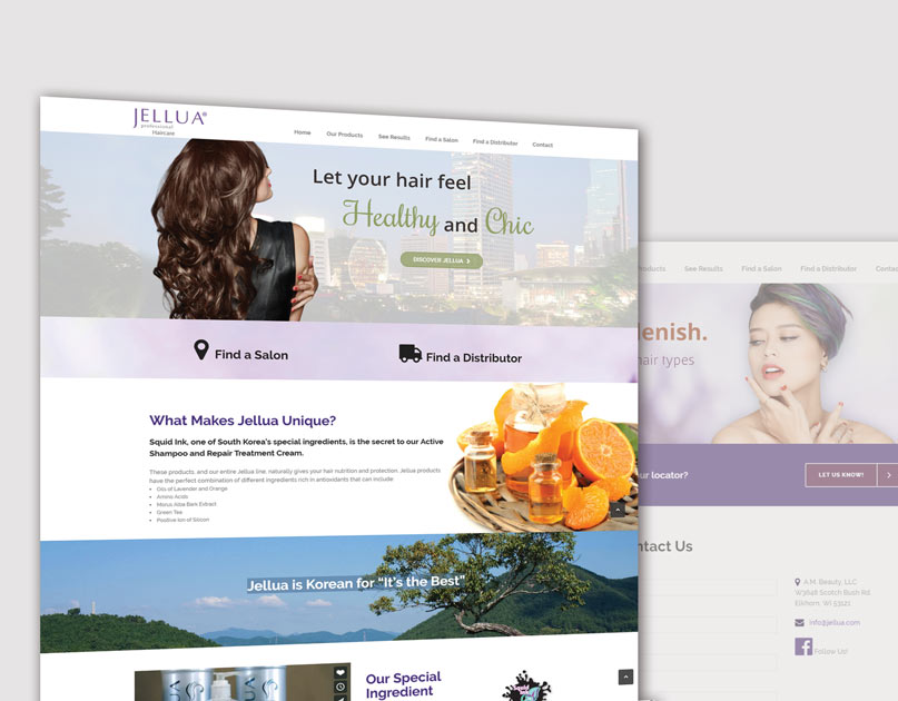 Designed website and business cards for haircare product distributor.